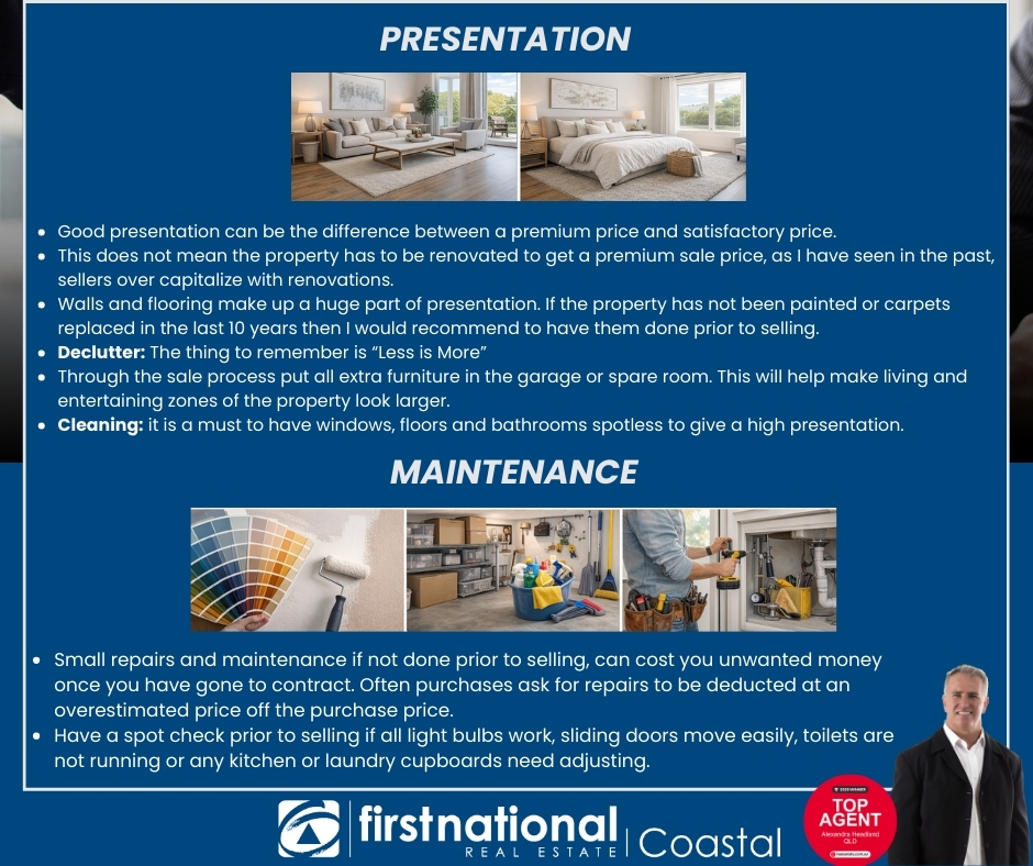 We will do an assessment of your property and do a profile of the likely buyer, and then provide you with a list of things you can do to enhance the look and presentation of the property, which will help attract the right buyers to your property at the right price.